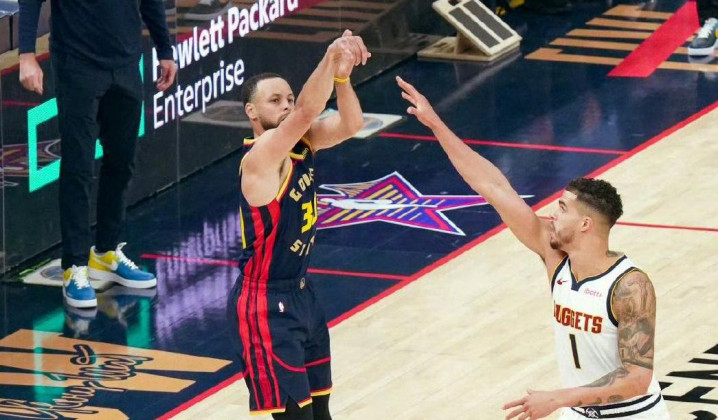 在对阵掘金的比赛中,库里依然宝刀不老,投篮准星丝毫不受背靠背比赛影响。